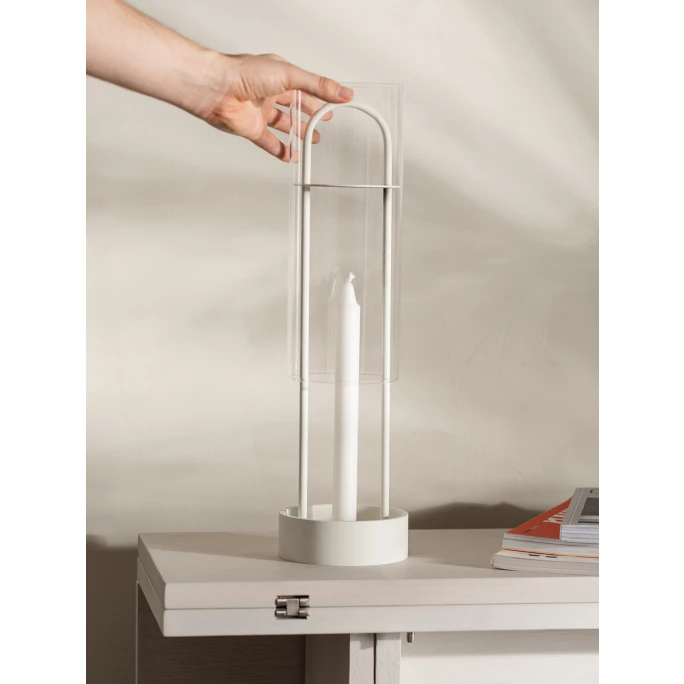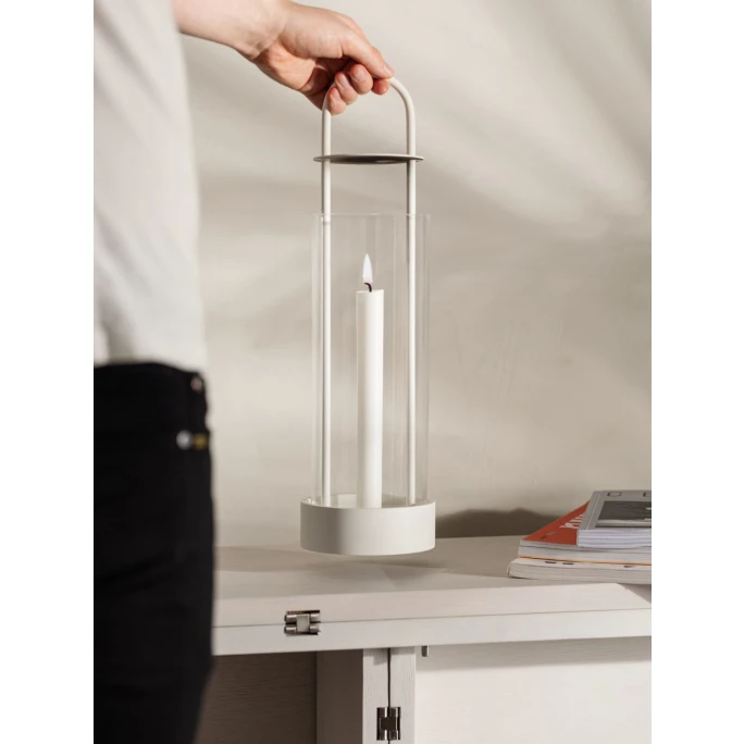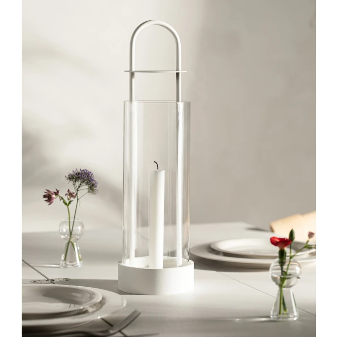 Mit dieser Laterne holen Sie sich die Geschichte von 2 Designern ins Haus. Ursprünglich wurde dieses Windlicht in Laternenform für einen Pop-Up-Designstore im Garten von Rosendal in Stockholm entworfen.Der Store, entworfen vom Architekten Thomas Sandell, bat Design House Stockholm und die Designerin Kristina Stark im Jahr 1998, eben für diesen Shop ein besonderes Produkt zu entwerfen. Kristina Stark, eine bekannte unabhängige Designerin, die für namhafte Marken wie Höganäs Keramik, Boda Nova, Gense und eben Design House Stockholm entwirft, kreierte diese Kerzenlaterne. Seit 2008 vertreibt sie auch ihre eigenen Designerstücke. Ihr Markenzeichen ist die Einfachheit Ihrer Kreationen. Wie sie mit eigenen Worten sagt, ist es einfacher etwas hinzuzufügen, als wegzulassen. Dass sie dieser Herausforderung gewachsen ist, hat sie mit der Lotus Laterne für Design House Stockholm wieder einmal bewiesen. Das dabei entstandene Windlicht ist auf der einen Seite sehr zurückhaltend und dabei doch beeindruckend. Auf dem Aluminiumsockel lassen sich sowohl Stumpenkerzen, als auch Stabkerzen verwenden, die dank dem Glasrohr auch stürmischen Zeiten standhalten. Der durchdachte Haltegriff, macht es Ihnen einfach die Laterne auch im brennenden Zustand zu transportieren. Zwischen Kerze und Haltegriff ist eine Abdeckung angebracht, die Ihre Hände vor der Hitze schützen. So haben Sie mit der Lotus Laterne einen perfekten Kerzenständer für drinnen und draußen oder für den Weg dazwischen. Machen Sie ihren Balkon zu einem romantischen Ort, verwandeln Sie ihren Garten in eine heimelige Lichtoase oder verleihen Sie ihren Abendstunden einfach eine gemütliche Atmosphäre. Mit diesem Designerstück von Design House Stockholm, ist in Ihrem Zuhause eine besondere Stimmung ab sofort garantiert.