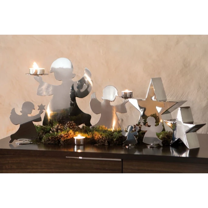 Freuen Sie sich auf den niedlichen Kerzenhalter HOLYWORKER aus dem Hause Fink. Das weihnachtliche Design zeigt eine kleine Engelsfigur, in deren Hand sich Platz für eine Kerze bietet. Durch die glänzende Oberfläche sorgt der Kerzenhalter für tolle Lichteffekte und eine gemütliche Stimmung. Außerdem bietet er viele Dekorations- und Kombinationsmöglichkeiten. Das Material besteht aus aufwendig versilbertem Metall, der besonders robust und anlaufgeschützt ist. Die Firma Fink steht für erstklassige Produkte und unverkennbares Design. Die Artikel werden in exklusiven Manufakturen angefertigt und bis ins kleinste Detail durchdacht.