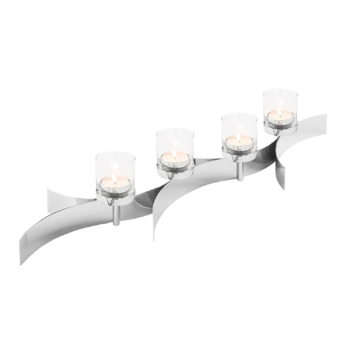 Der Teelichthalter MELODY aus dem Hause Fink setzt Kerzen stilvoll in Szene! Die Kombination aus gradlinigen Glaszylindern und einem flachen Metallelement macht den Halter zu etwas besonderem. Das vernickelte Metall ist in verschiedene Bögen geschmiedet und elegant zusammengefügt. So entsteht ein stilvolles Gesamtbild. Durch das elegante Design passt der Halter zu vielen Wohnstilen und Einrichtungen. Bestellen Sie den Teelichthalter MELODY von Fink und lassen Sie sich von Qualität und Design begeistern!