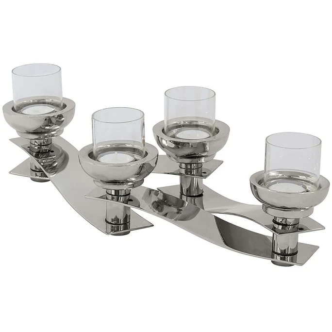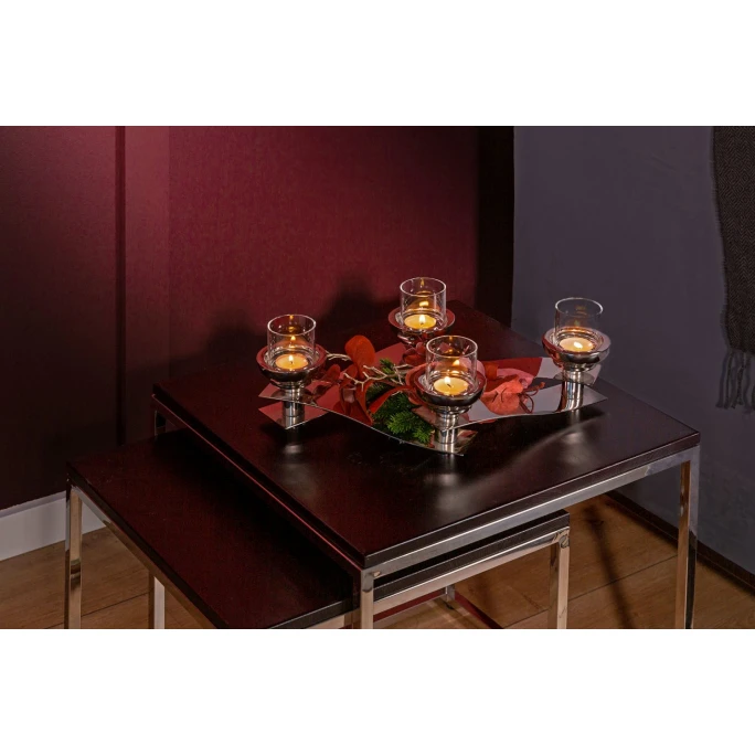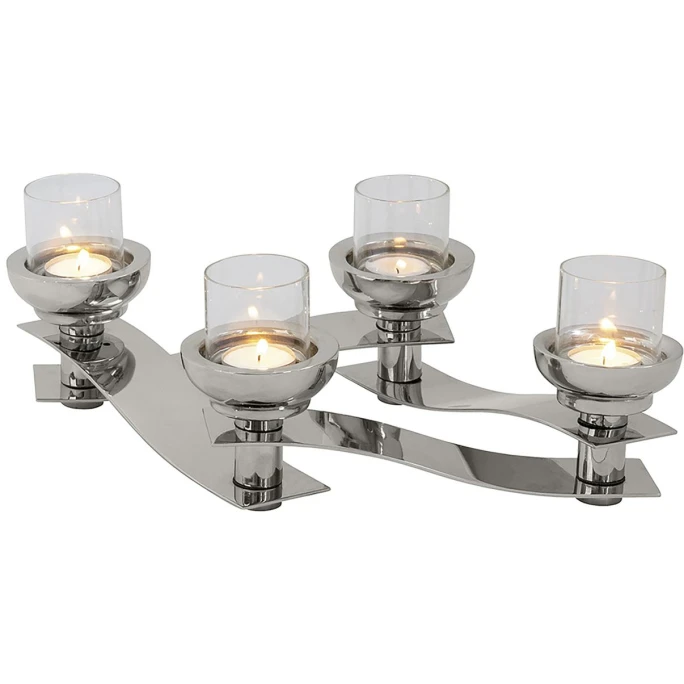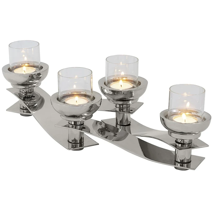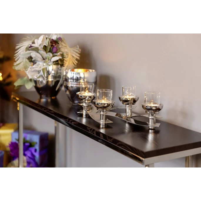Mit seinem ausgefallenen Design wird der 4-flammige PAREO Kerzenhalter von Fink zum stilvollen Blickfang auf dem Tisch oder dem Sideboard. Glänzender Edelstahl und mundgeblasenes Glas geben dem Teelichthalter einen besonders edlen Touch. Der Clou: PAREO lässt sich durch das bewegliche Design umformen. So können Sie ihn entweder in länglicher oder in eckiger Form präsentieren – einfach genial! Egal ob im Alltag, auf der festlich dekorierten Tafel oder zur Weihnachtszeit: Der Fink Kerzenhalter passt zu jeder zeitgemäßen Wohnraumeinrichtung und ist auch eine tolle Geschenkidee für jeden Liebhaber besonderer Handwerkskunst. Lassen Sie sich von dem tollen Design und der hochwertigen Verarbeitung begeistern und sorgen mit dem 4-flammigen PAREO Kerzenhalter von Fink für stimmungsvolle Lichtakzente in Ihrem Zuhause!