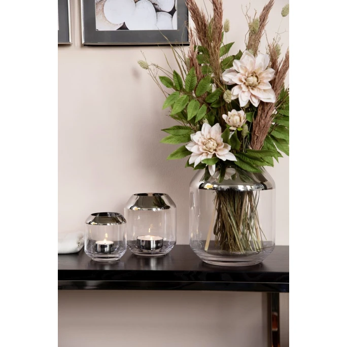 Stimmungsvolle und romantische Atmosphäre lässt sich ganz einfach herbeizaubern: Die Teelichtgläser aus der Serie SMILLA von Fink setzen kleine Lichter groß in Szene. Beim gemütlichen Zusammensitzen im Wohnzimmer oder an einem warmen Sommerabend im heimischen Garten sind sie echte Multitalente, wenn es um Lichtakzente geht. Durch die verjüngte Öffnung bleibt die offene Flamme gut geschützt, der silberfarbene Rand reflektiert den warmen Schein der Kerze und verstärkt die Wirkung. Bestellen Sie den hochwertigen Teelichthalter SMILLA aus dem Hause Fink in einer von vielen Varianten und erfreuen Sie sich immer wieder an Qualität und Design!