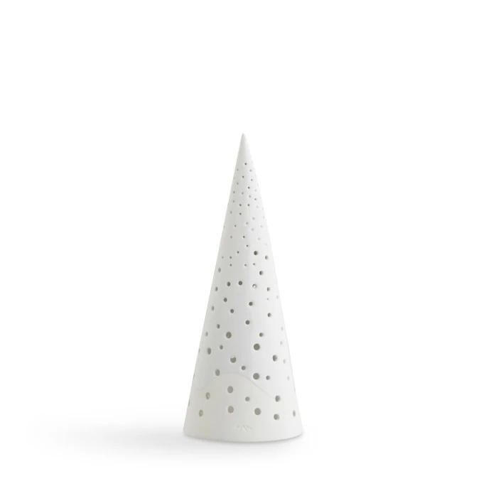 Kähler Design ist ein traditionsreiches Unternehmen aus Dänemark, welches seit 1839 besteht und zum dänischen Kulturgut zählt. Mittlerweile ist die Marke weltweit bekannt und sehr beliebt für die klassischen sowie stilvollen Stücke. Die glanzvolle Serie Nobili wurde von dem Designerduo R7B Copenhagen für Kähler entworfen. Hinter diesem Namen stehen Mette Bache und Barbara Bendix Becker. Das Designerteam interpretiert den klassischen Winter- und Weihnachtsschmuck neu und vereint dabei nordische Traditionen mit modernen Einflüssen. Der stimmungsvolle Teelichtleuchter aus der gleichnamigen Serie Nobili beeindruckt durch die elegante Silhouette einer schneebedeckten nordischen Tanne. Das Zusammenspiel der abstrakten Formen und Strukturen sowie die Farbgebung sorgen für einen edlen und zugleich modernen Ausdruck dieser exklusiven Winter- und Weihnachtsserie. Sobald das Licht im Inneren brennt, strahlt dieses durch die kleinen runden Öffnungen und erinnert dabei an einen mit Kerzen geschmückten, glamourösen Tannenbaum. Der Leuchter besteht aus hochwertigem Keramik und ist in einem festlich schimmernden Weiß gehalten. Mit dem liebevoll gestalteten Teelichtleuchter Nobili von Kähler zaubern Sie ein warmes und stilvolles Ambiente in Ihrem Zuhause. Die wunderschöne Serie besteht aus verschiedenen Accessoires in unterschiedlichen Farben, Formen und Größen. Somit können Sie den faszinierenden Teelichtleuchter einzeln oder im Ensemble dekorativ in Szene setzen. Wir bieten Ihnen die komplette, geschmackvolle Serie Nobili in unserem Shop an. Freuen Sie sich auf die schönste Zeit im Jahr!