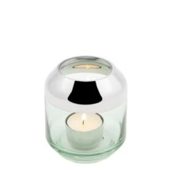 Fink Living Fink Smilla Teelichthalter – Höhe 9 Cm – Ø 9 Cm – Grün, Silberfarben