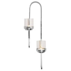 Fink Living Fink SAXON 2-flammiger Wand-Teelichthalter – Höhe 60 Cm – Klar/silberfarben