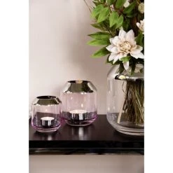 Fink Living Fink Smilla Teelichthalter – Höhe 9 Cm – Ø 9 Cm – Rosa, Silberfarben