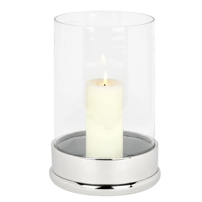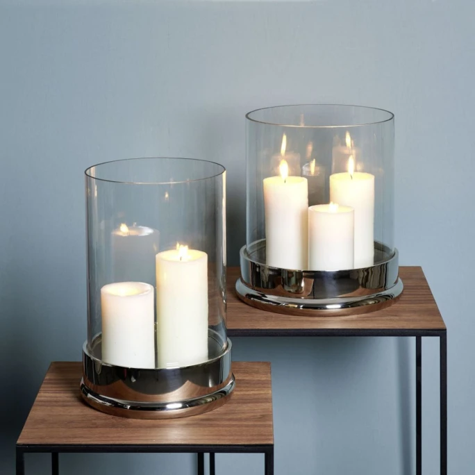Können Sie sich ein Wohnambiente ohne Windlichter und Kerzen vorstellen? Unterschiedlichste Materialien und Ausführungen bietet Lambert mit seiner Vielzahl an wunderschönen Windlichtern an. Bei dem Windlicht BAO ist dem Gestalter eine klare und moderne Interpretation gelungen. Auf einer Schale aus gegossenem und vernickeltem Aluminium sitzt der schlichte Glaskorpus aus klarem, mundgeblasenem Glas. BAO wirkt schlicht, elegant und zeitlos schön und ist daher ein must-have für jedes Ambiente. Das hochwertige Windlicht BAO darf nicht dauerhaft Feuchtigkeit ausgesetzt sein, denn dies würde die Oberfläche angreifen. Zum Reinigen verwenden Sie bitte nur warmes Wasser, ein weiches Tuch und etwas Spülmittel. Mit warmem Wasser lassen sich Wachsrückstände am besten entfernen. Genießen Sie gemütliche Momente bei Kerzenschein mit dem Windlicht BAO von Lambert.