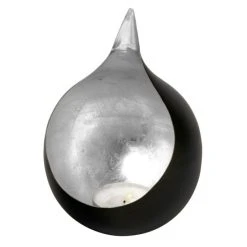 Kostbar und sehr romantisch präsentieren sich die Windlichter Caldera von Lambert. Die Tropfenform ist aus Eisen handgetrieben und von innen mit feinem silberfarbenen Metallblatt nach alter Vergoldungstechnik belegt. Außen wird das Windlicht edel vernickelt und von Hand gebürstet, so dass feine Linien entstehen. Caldera sollte nicht Wind und Wetter ausgesetzt bleiben, da die edle Blattgoldoberfläche darunter leiden könnte. Das Silber schimmernde Licht verleiht jedem Abend die richtige romantische Stimmung. Lambert steht für Liebe zum Detail, jedes Produkt der Kollektionen besitzt seine ganz eigene Herstellungsgeschichte. Mit großer Sorgfalt werden die Materialien ausgewählt und verarbeitet, so gehen Handwerkskunst und Kunsthandwerk eine tiefe Verbindung ein und es entstehen individuelle Objekte, die weltweit Begeisterung finden. Genießen Sie tolle Abende mit besonderen Lichteffekten, mit den Windlichtern Caldera von Lambert.