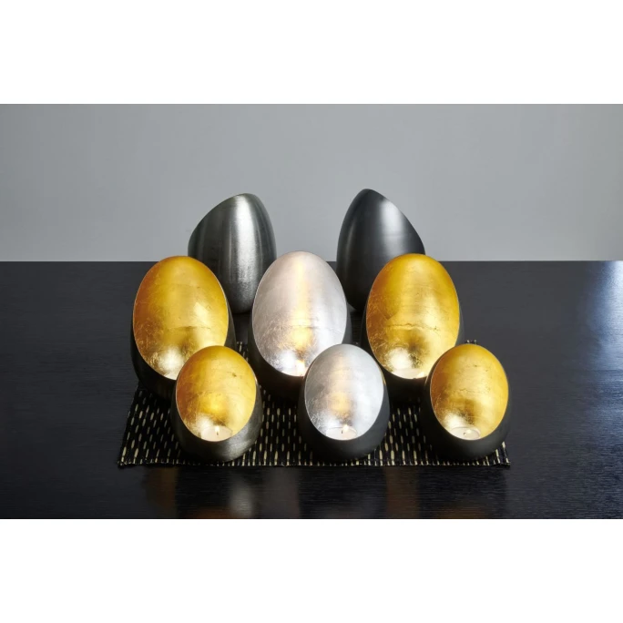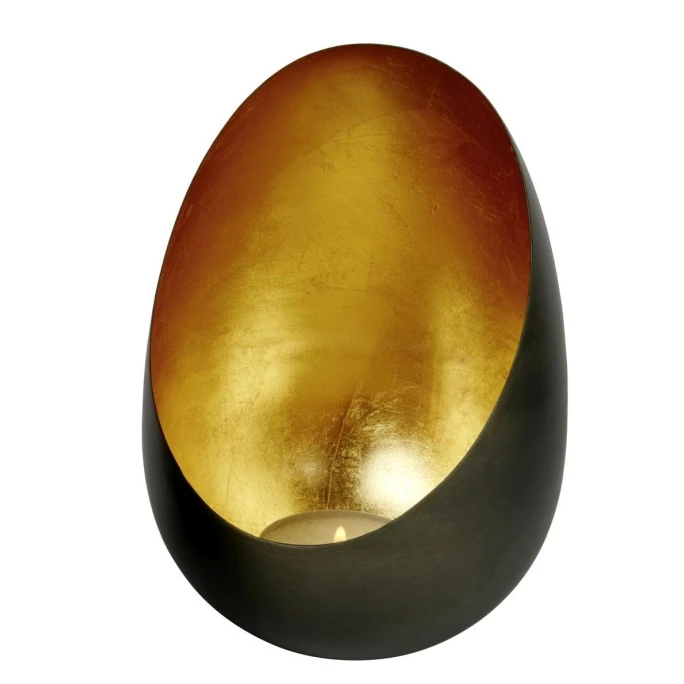 Dekorative, kleine Windlichter kann man im Sommer sowie Winter nie genug haben. Casati von Lambert wird aus feinem Metallblech in seine besondere Form gedrückt. Innen wird der Teelichthalter von Hand im traditionellen Verfahren mit gold- oder silberglänzender Metallfolie versehen, was das optische Gesamtbild nicht nur perfekt abrundet, sondern das Kerzenlicht zudem auf ganz besondere Art und Weise reflektiert. Die Außenseite von Casati ist im natürlichen Eisenmetallton gehalten und mit einem Schutzlack versehen. Dennoch sollte das Lambert Windlicht nicht dauerhaft draußen stehen und Wind und Wetter ausgesetzt werden, da die Oberfläche sonst korrodieren könnten. Kerzenwachs darf nicht mit scharfen Gegenständen entfernt werden, sondern sollte vorsichtig mit warmem Wasser aufgeweicht und abgezogen werden. Zur Pflege ist ein weiches Tuch mit etwas Spülmittel ideal. Egal ob im Alltag oder auf der festlich dekorierten Tafel, solitär oder als Gruppe miteinander arrangiert: Casati ist ein absoluter Eyecatcher und sorgt für stimmungsvolle Lichtakzente. Lassen Sie sich von dem eiförmigen Design und dem edlen Look begeistern und machen Sie sich oder einem lieben Menschen mit dem Casati Windlicht von Lambert eine besondere Freude!