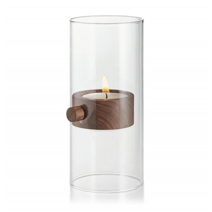 Beim zarten Teelichthalter LIFT XL darf fast schon von HighTech gesprochen werden. Gleich zwei ins Wallnussholz eingebettete Magnete halten das Maxiteelicht sicher an der gewünschten Position fest und lassen es zugleich von Hand spielend leicht in der Höhe variieren. Oder eben zum Entzünden oder Auslöschen nach oben holen. Im Ensemble zu zweit oder dritt zaubern die Glaszylinder strahlenden klaren Kerzenschein im Raum und laden als Windlicht jederzeit zum Träumen ein.